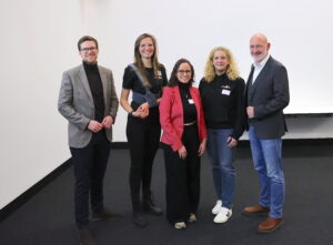 Wie Innovationen aus Dortmund erfolgreich in den Markt eingeführt werden, zeigte Dr. Anna Dieckhöfer auf. Sie ist Mitgründerin des Dortmunder Startups SLAPStack, das zu den „innoclub Fellows“ gehört. „SLAPStack ist ein revolutionäres KI-basiertes Betriebssystem für Bodenblocklager, das alle notwendigen Softwarekomponenten wie Leitsteuerung, Lagerverwaltung und Simulation in einer Lösung integriert. Dies ermöglicht eine optimierte Auftragsabwicklung für fahrerlose und manuell gesteuerte Gabelstapler. Durch das einfach realisierbare, effiziente und adaptive Lagersystem lassen sich erheblich Kosten einsparen“, erläuterte Dr. Anna Dieckhöfer.